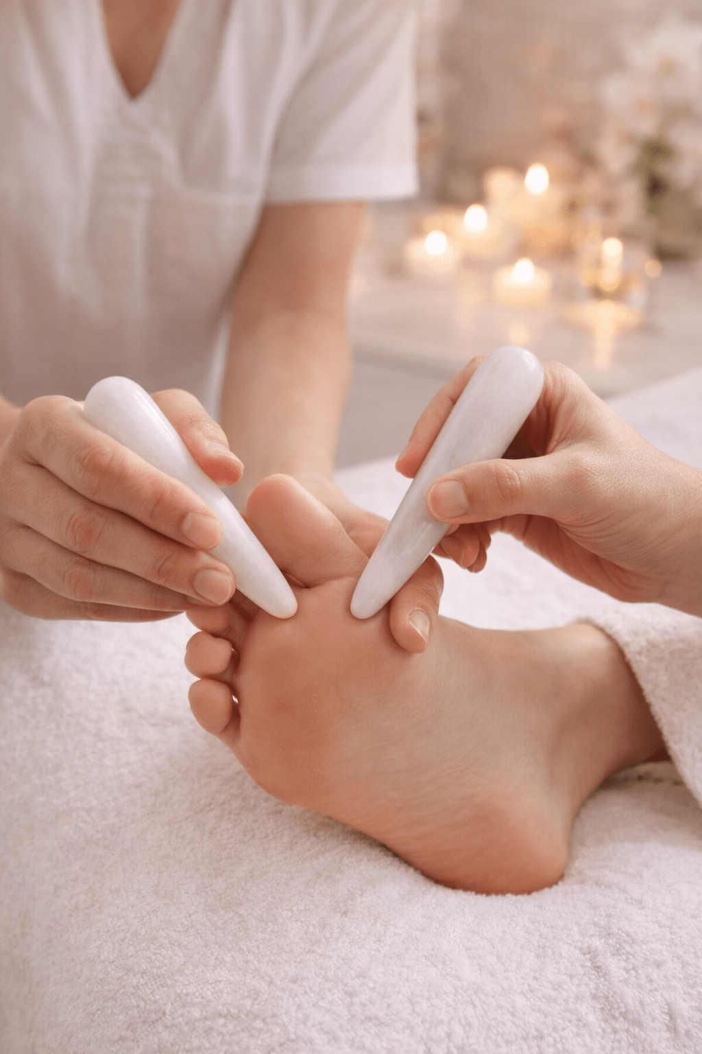 Dùng đầu đá ấn nhẹ vào các huyệt hoặc lăn trên vùng cần massage