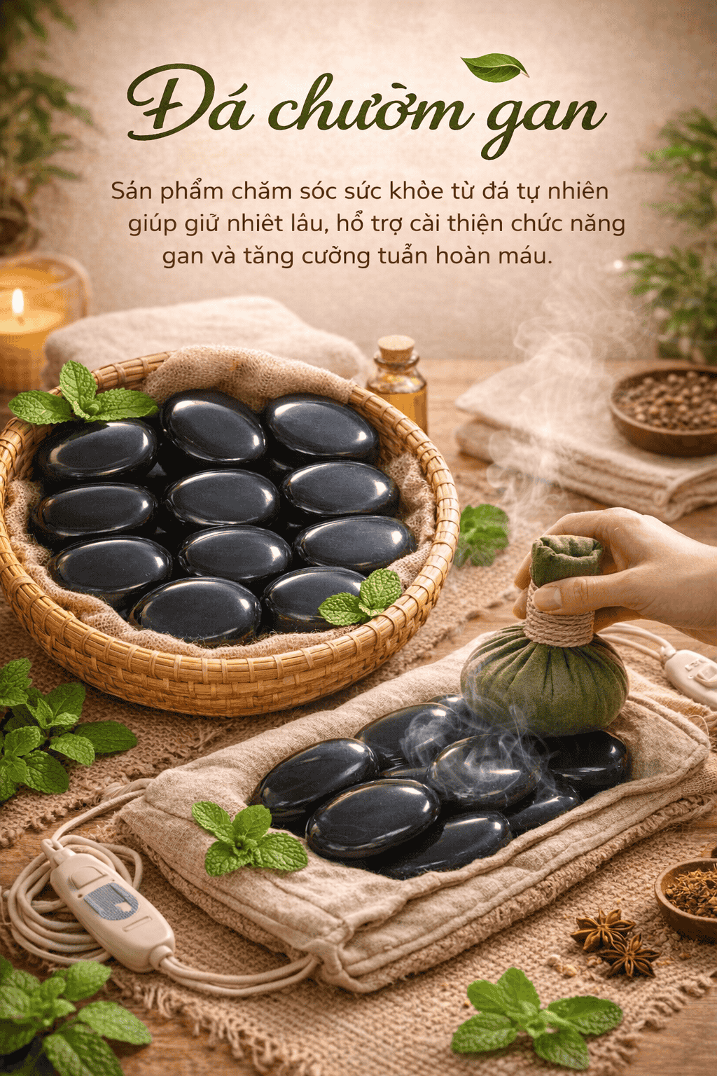 Đá chườm gan là sản phẩm chăm sóc sức khỏe được làm từ đá tự nhiên, có khả năng giữ nhiệt lâu, giúp tác động nhiệt sâu vào vùng gan. Sản phẩm thường được sử dụng kết hợp với liệu pháp chườm ấm nhằm hỗ trợ cải thiện chức năng gan và tăng cường tuần hoàn máu.