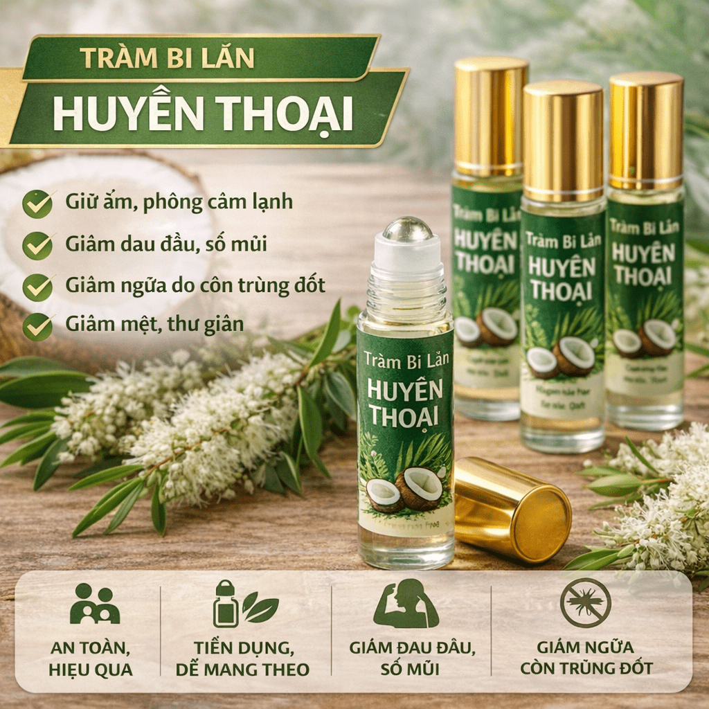 Thành phần: Tinh dầu tràm nguyên chất kết hợp dầu nền thiên nhiên an toàn cho da