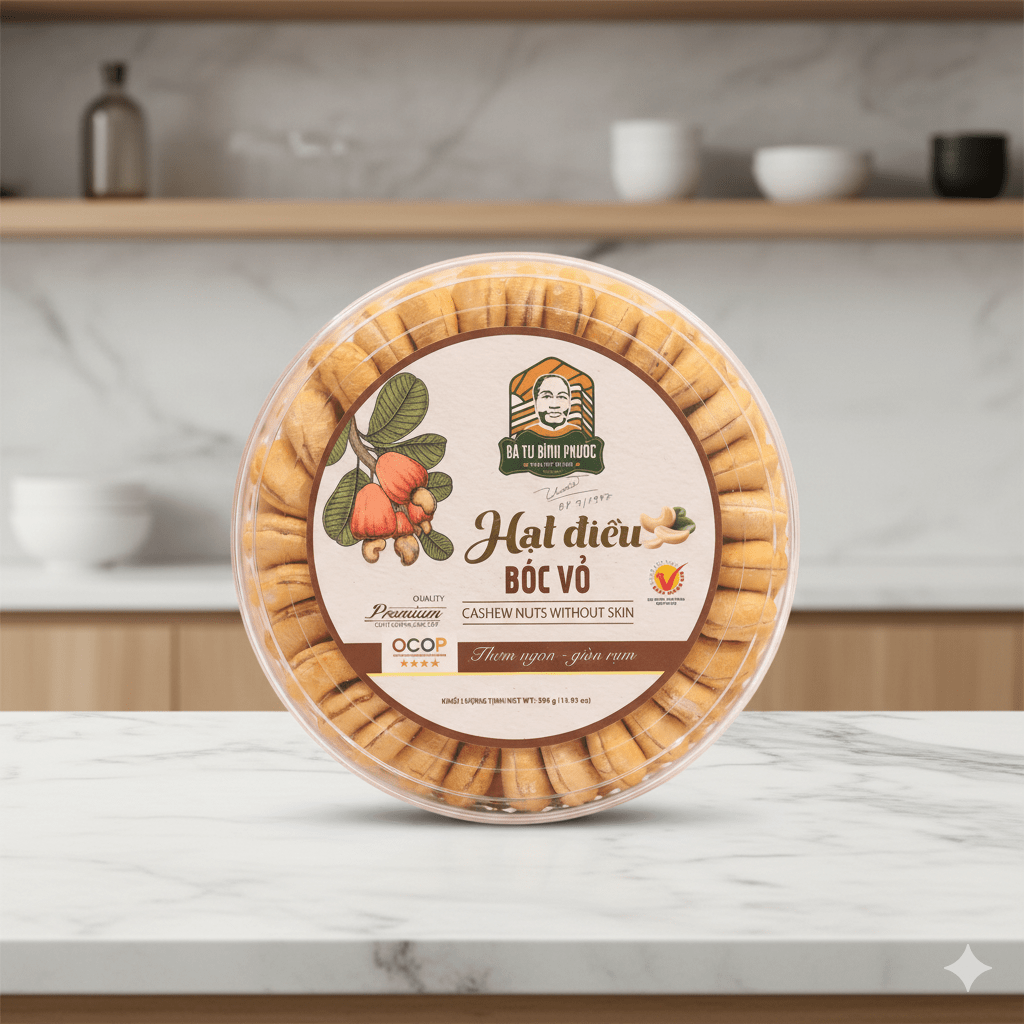 Hạt điều bóc vỏ Bà Tư được chọn lọc từ điều nhân trắng loại 1, rang mộc không dầu, không muối, không chất bảo quản. Hạt đã được bóc sạch lớp vỏ lụa, giúp tiện lợi khi sử dụng, đặc biệt phù hợp cho người lớn tuổi, trẻ nhỏ, hoặc dùng trong nấu ăn – làm sữa hạt, bánh kẹo, topping...