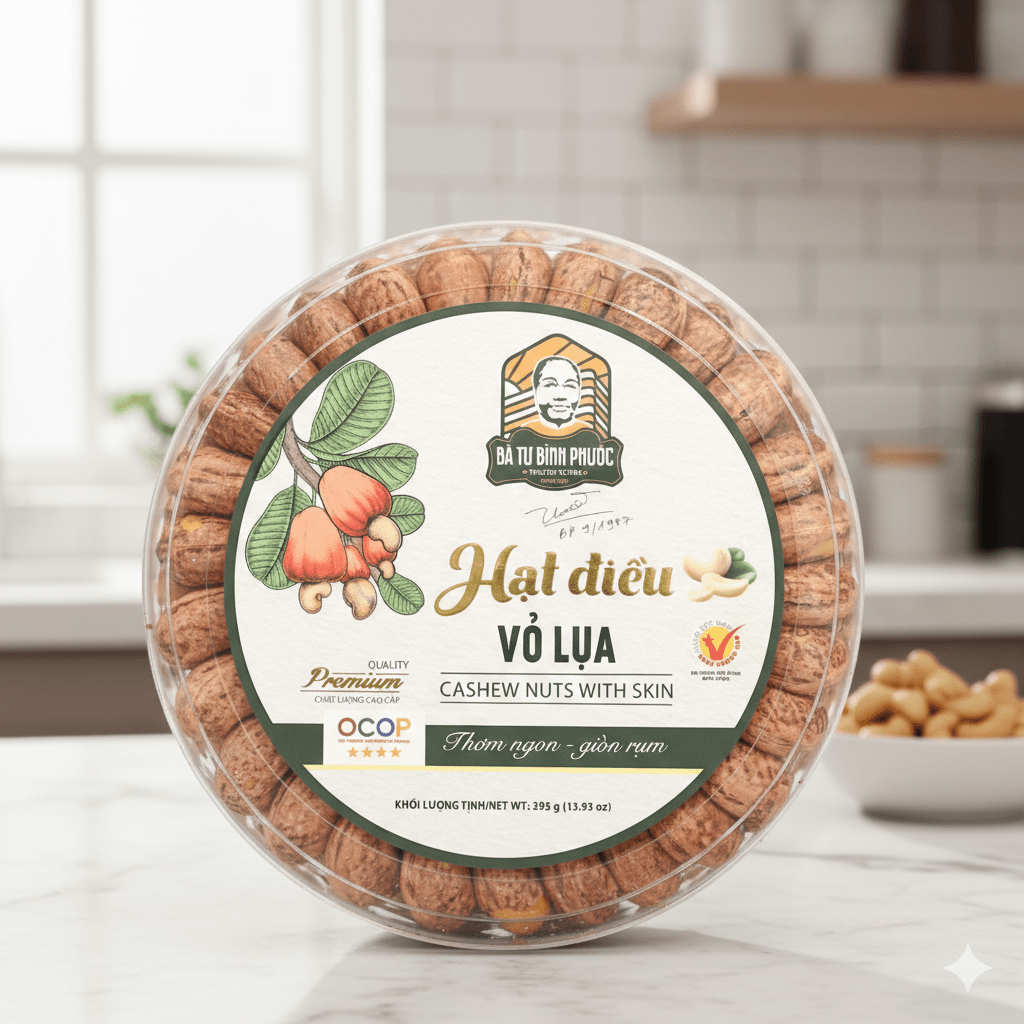 Hạt điều vỏ lụa Bà Tư hộp 395g - OCOP