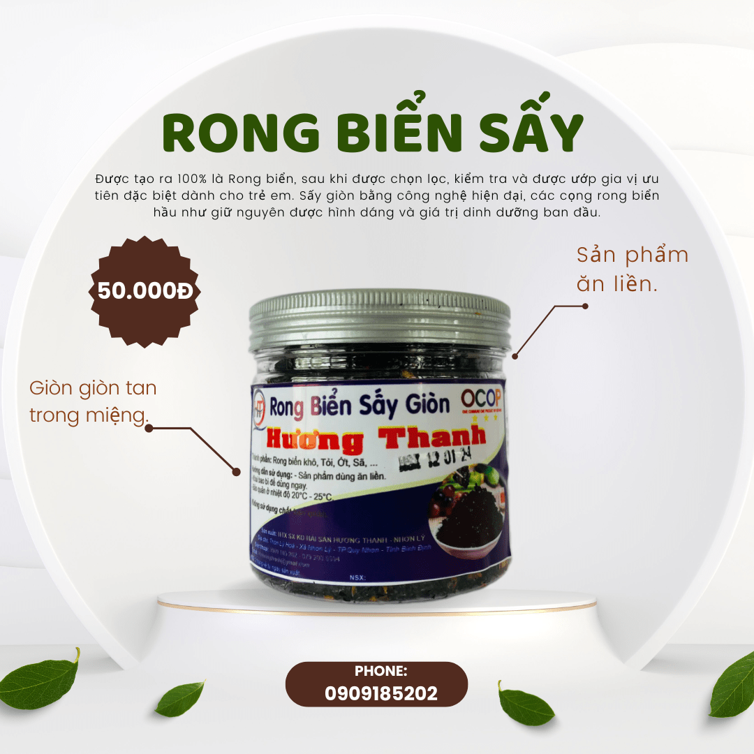 RONG BIỂN SẤY GIÒN - HƯƠNG THANH: Sản xuất tại HTX SX KD Hải Sản Hương Thanh – Nhơn Lý